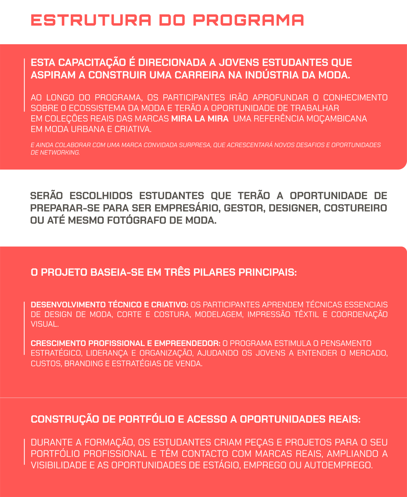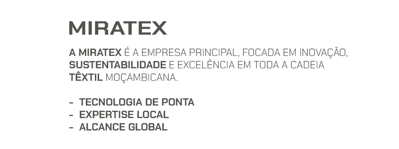 MIRATEX CAPACITA MAPUTO, MOÇAMBIQUE Documentos por baixar REGULAMENTO DO PROGRAMA TERMO DE ADESÃO AO PROGRAMA TERMO DE USO DE IMAGEM Candidatar-me agora Redes Sociais